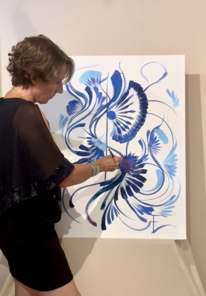 À travers gestes, couleurs et souffle, elle traduit sur la toile les mouvements intérieurs du collectif.